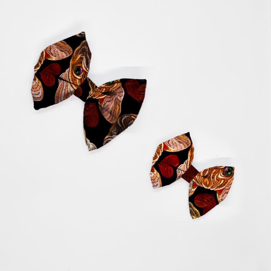 Kokarda do obroży i szelek z weluru tapicerskiego lub tkaniny wodoodpornej. Piękna dekoracja dla psa i kota w kolorowym wzorze.