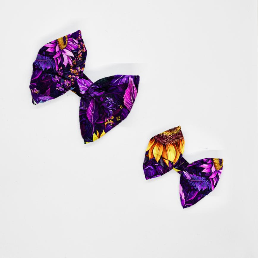 Kokarda do obroży – kokarda do szelek – FIOLETOWE SŁONECZNIKI