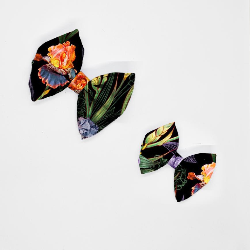 Kokarda do obroży i szelek z weluru tapicerskiego lub tkaniny wodoodpornej. Piękna dekoracja dla psa i kota w kolorowym wzorze.