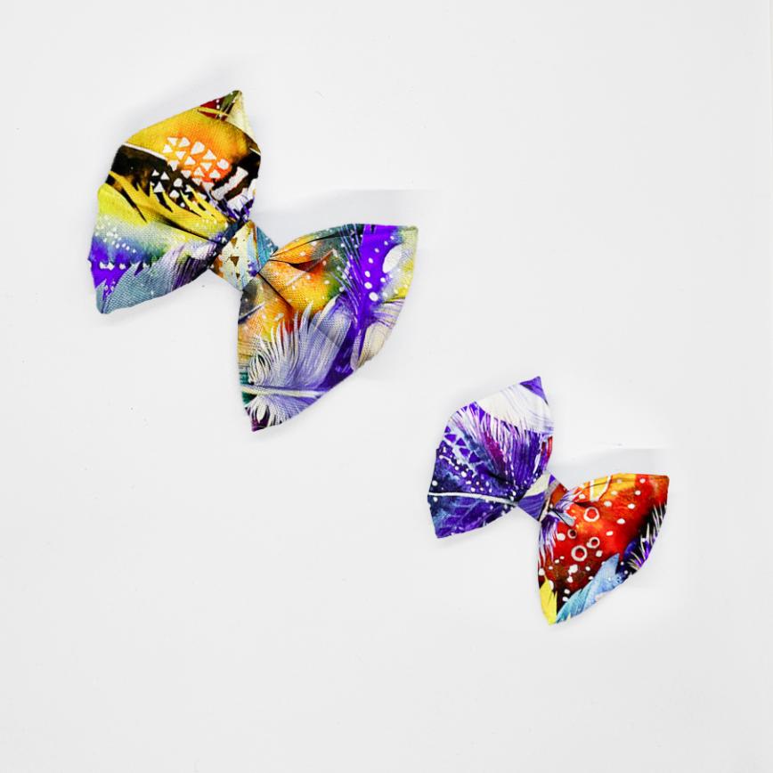 Kokarda do obroży i szelek z weluru tapicerskiego lub tkaniny wodoodpornej. Piękna dekoracja dla psa i kota w kolorowym wzorze.