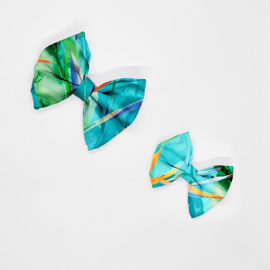 Kokarda do obroży i szelek z weluru tapicerskiego lub tkaniny wodoodpornej. Piękna dekoracja dla psa i kota w kolorowym wzorze.