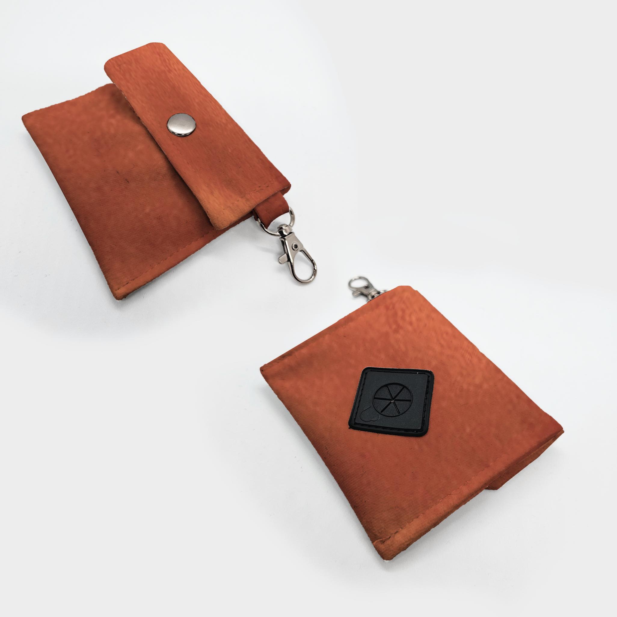 Pojemnik na worki na kupę psa z weluru tapicerskiego lub tkaniny wodoodpornej. Z dziurką do wyciągania woreczków i zapięciem do smyczy.