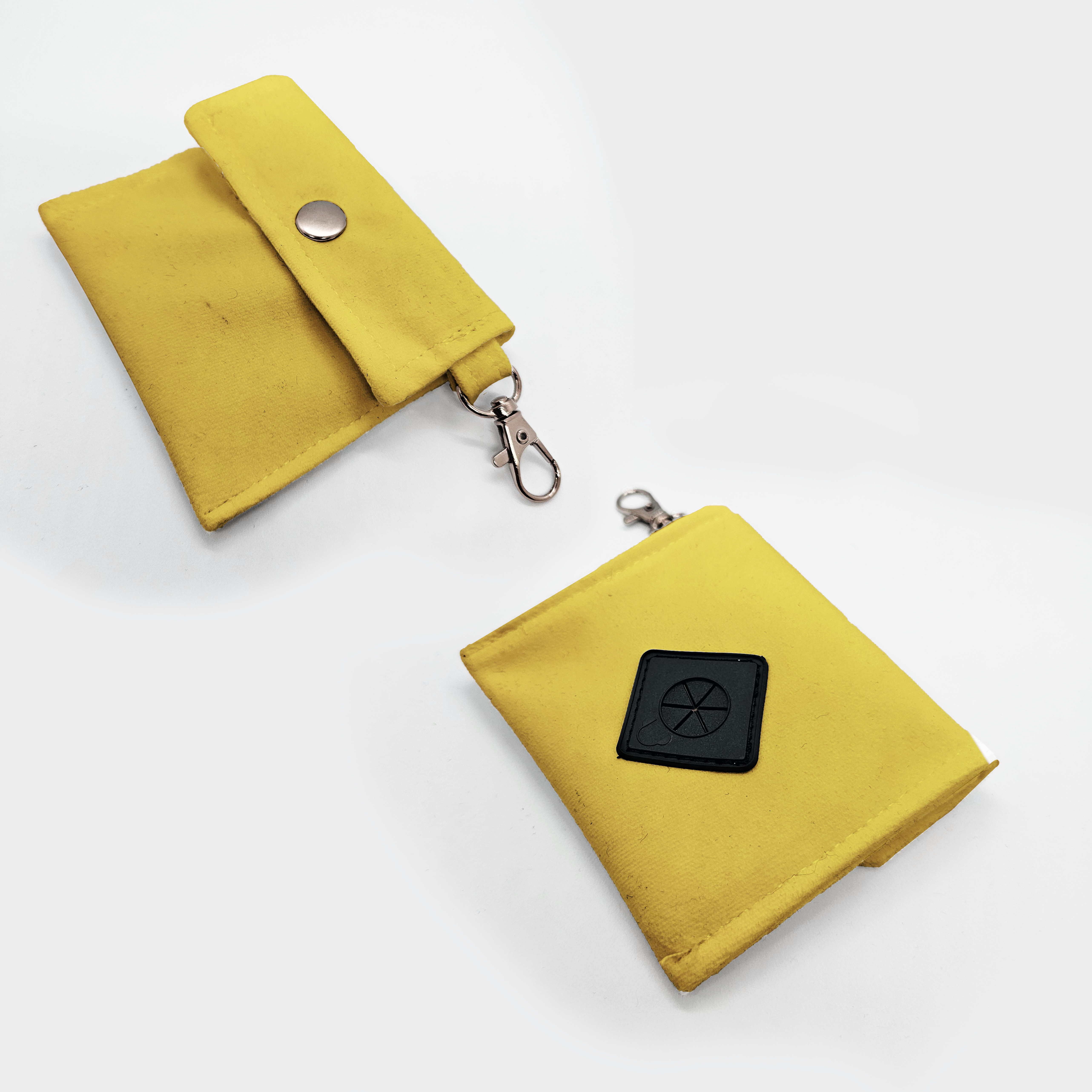 Pojemnik na worki na kupę psa z weluru tapicerskiego lub tkaniny wodoodpornej. Z dziurką do wyciągania woreczków i zapięciem do smyczy.