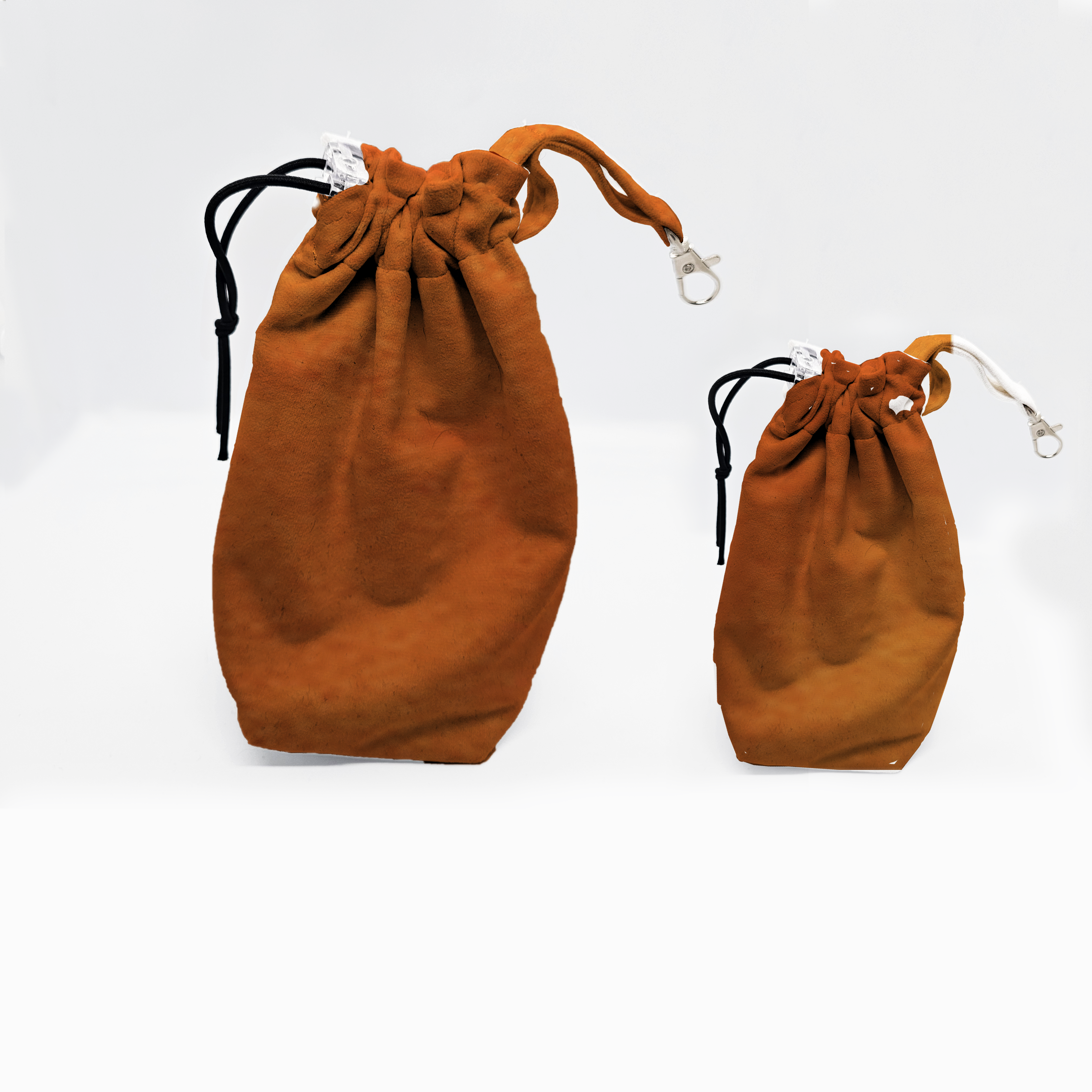 Woreczek na smaczki, smacznik, w zależności od preferencji klienta tworzymy z weluru lub z tkaniny wodoodpornej. W obu przypadkach podszewka w woreczku jest wodoodporna. Dostępne są trzy wielkości 8cm, 13 cm, 20 cm. Smaczniki mają wszysy karabińczyk pozwalający na przypięcie do smyczy lub paska.