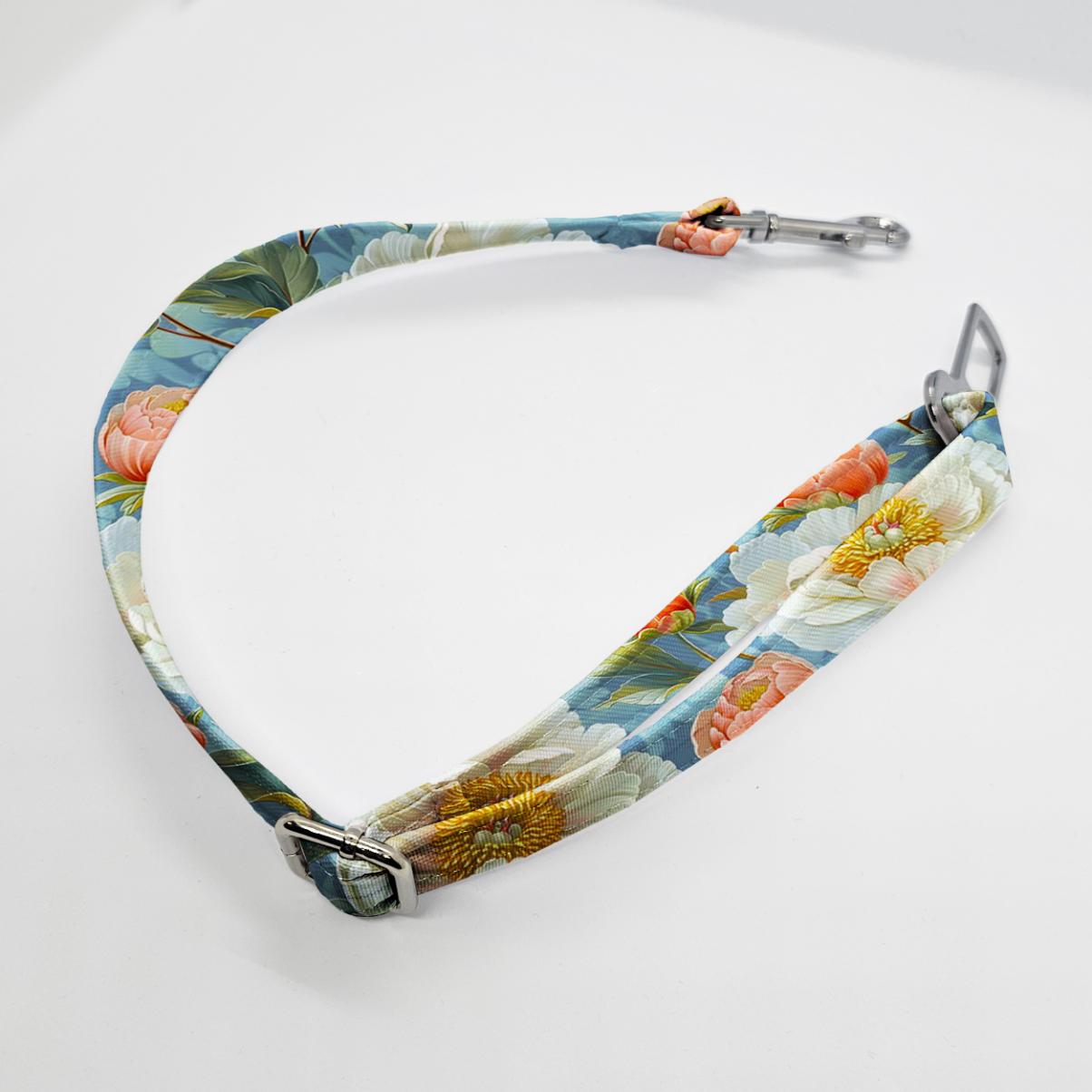 Zapięcie do auta dla psa z weluru tapicerskiego lub tkaniny wodoodpornej, zakończone karabinkiem. Regulowanej długości i w wielu wzorach.