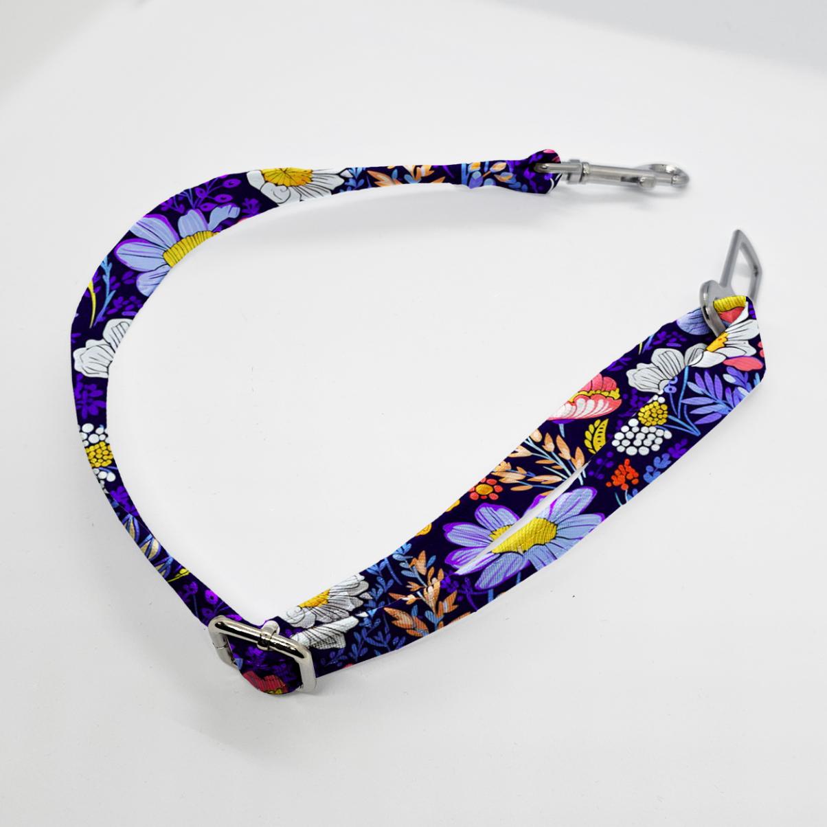 Zapięcie do auta dla psa z weluru tapicerskiego lub tkaniny wodoodpornej, zakończone karabinkiem. Regulowanej długości i w wielu wzorach.