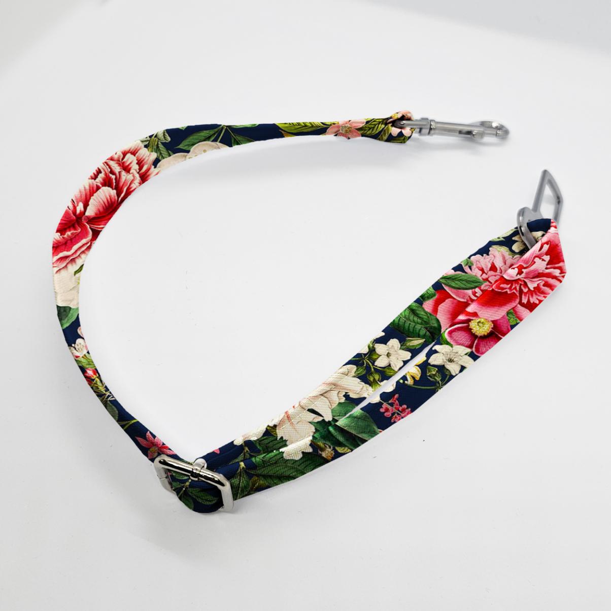 Zapięcie do auta dla psa z weluru tapicerskiego lub tkaniny wodoodpornej, zakończone karabinkiem. Regulowanej długości i w wielu wzorach.