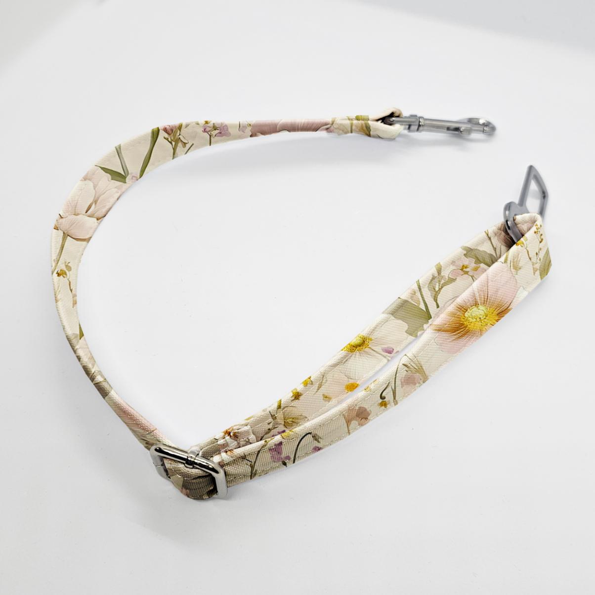Zapięcie do auta dla psa z weluru tapicerskiego lub tkaniny wodoodpornej, zakończone karabinkiem. Regulowanej długości i w wielu wzorach.