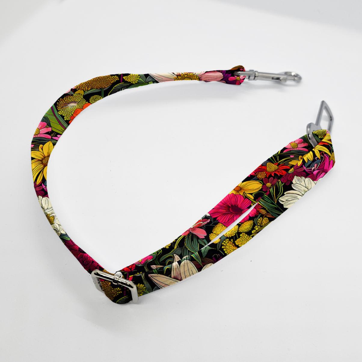 Zapięcie do auta dla psa z weluru tapicerskiego lub tkaniny wodoodpornej, zakończone karabinkiem. Regulowanej długości i w wielu wzorach.