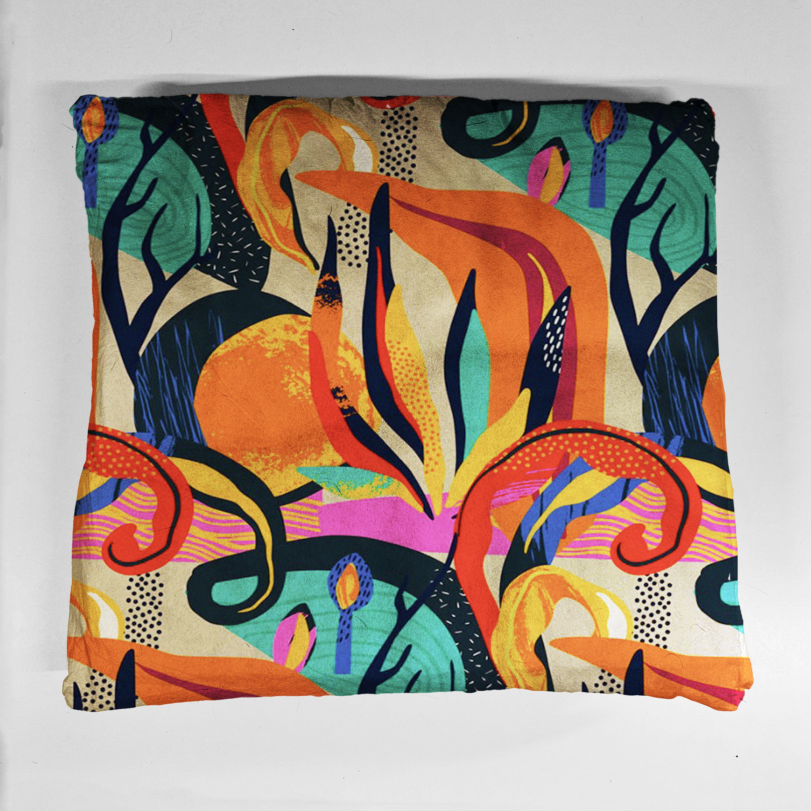 Legowisko dla psa i kota – kolorowe wzorzyste – ABSTRAKCJA POMARAŃCZOWE LIŚCIE