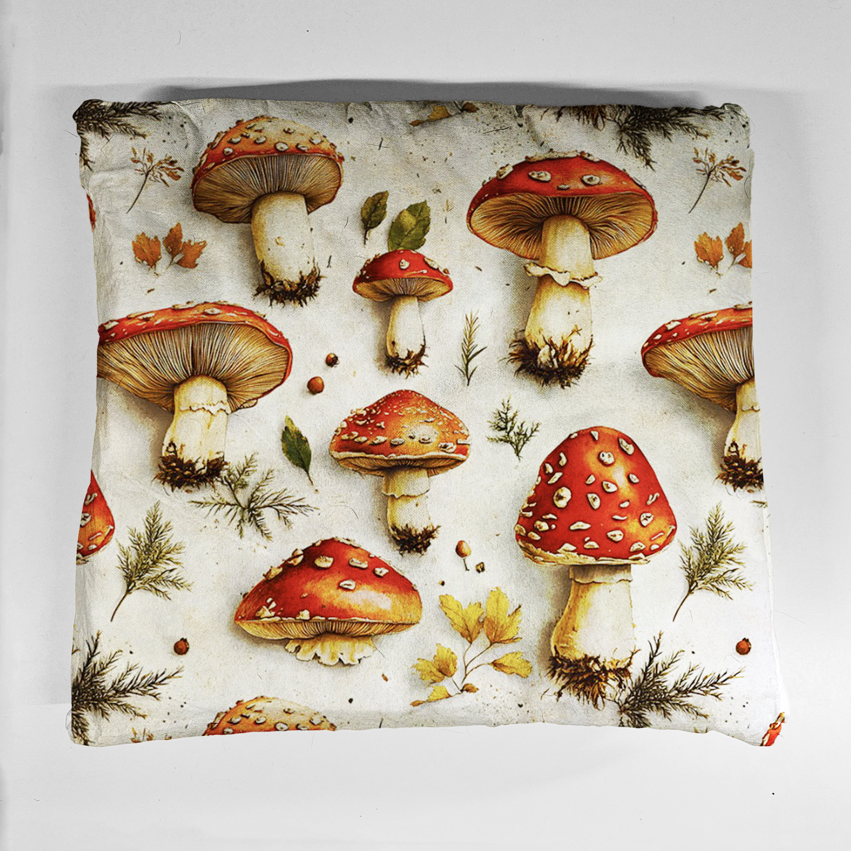 Legowisko dla psa i kota – kolorowe wzorzyste – MUCHOMORY NA JANYM TLE
