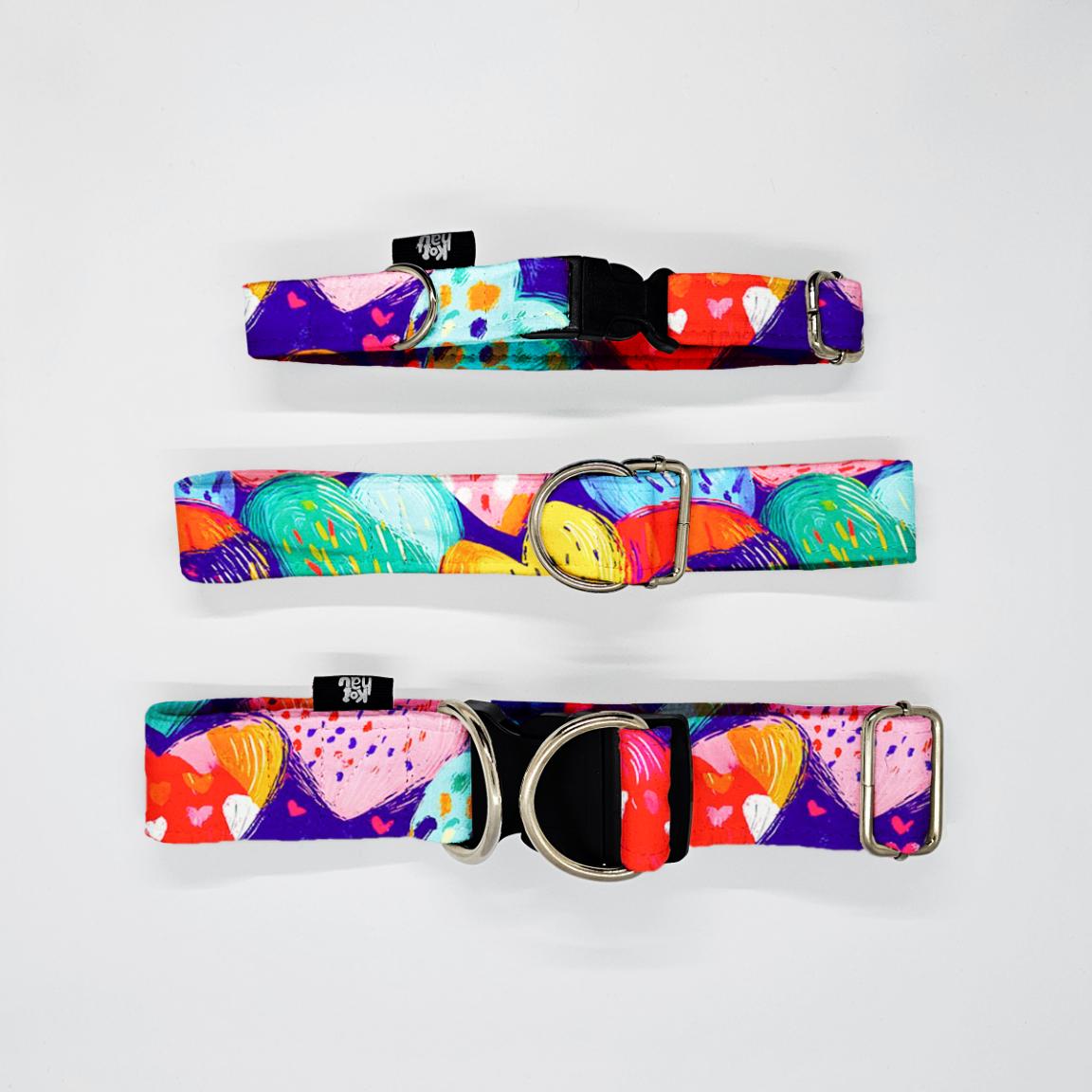 Obroża dla psa i kota – kolorowa wzorzysta – KOLOROWE SERCA
