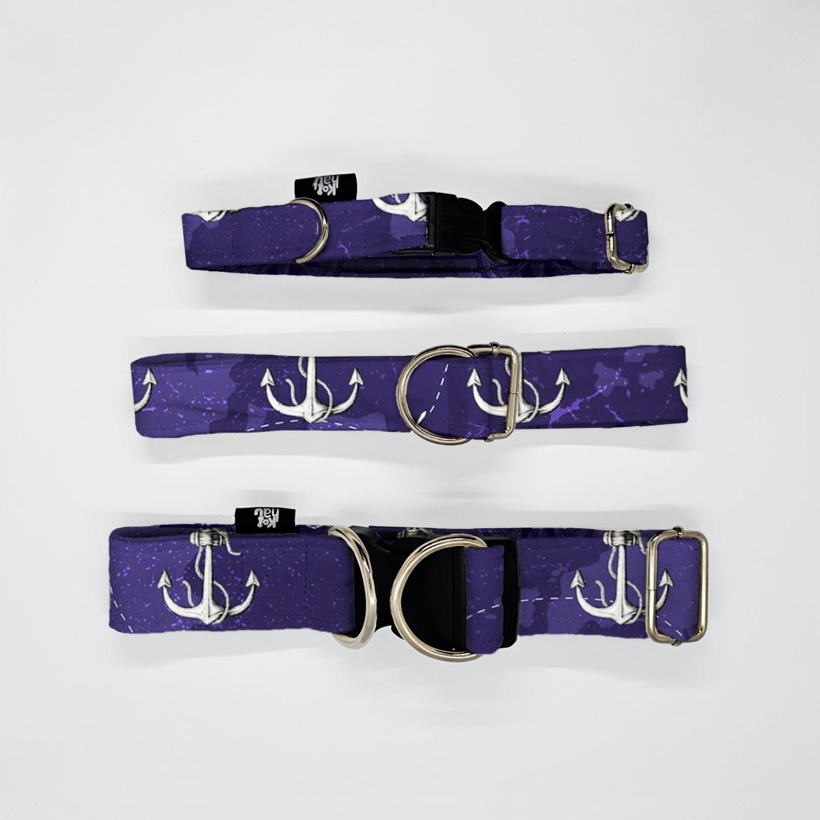 Obroża dla psa i kota – kolorowa wzorzysta – KOTWICE NA GRANATOWYM TLE