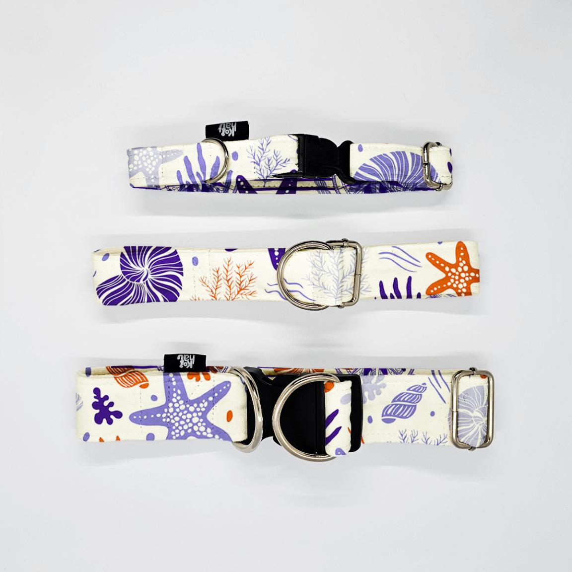 Obroża dla psa i kota – kolorowa wzorzysta – MORSKIE DNO NA JASNYM TLE