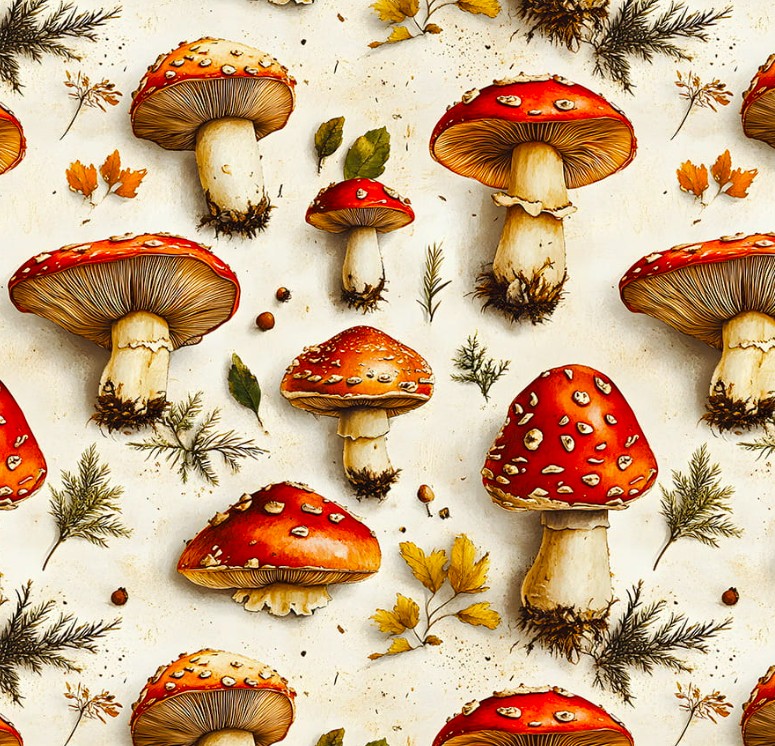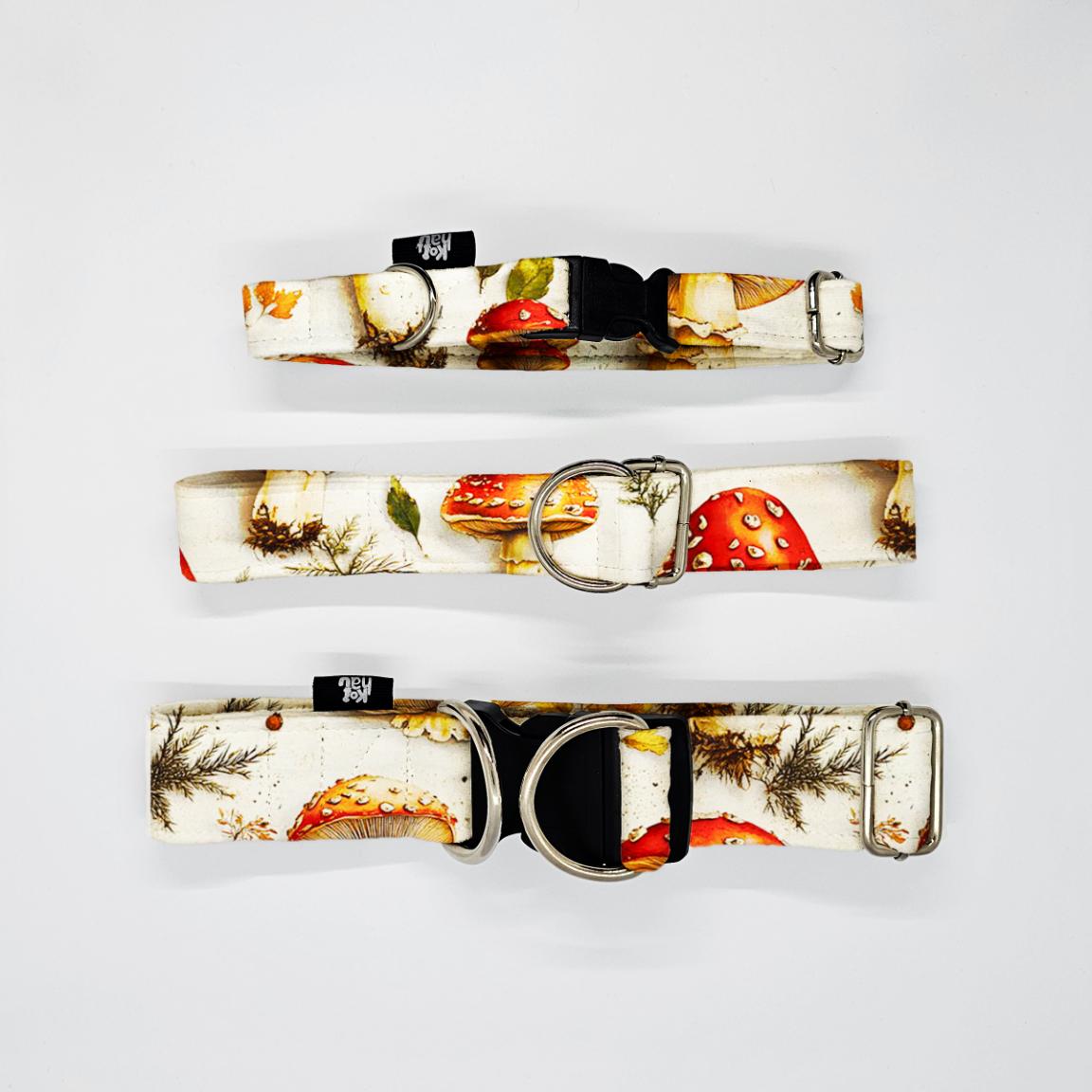 Obroża dla psa i kota – kolorowa wzorzysta – MUCHOMORY NA JANYM TLE