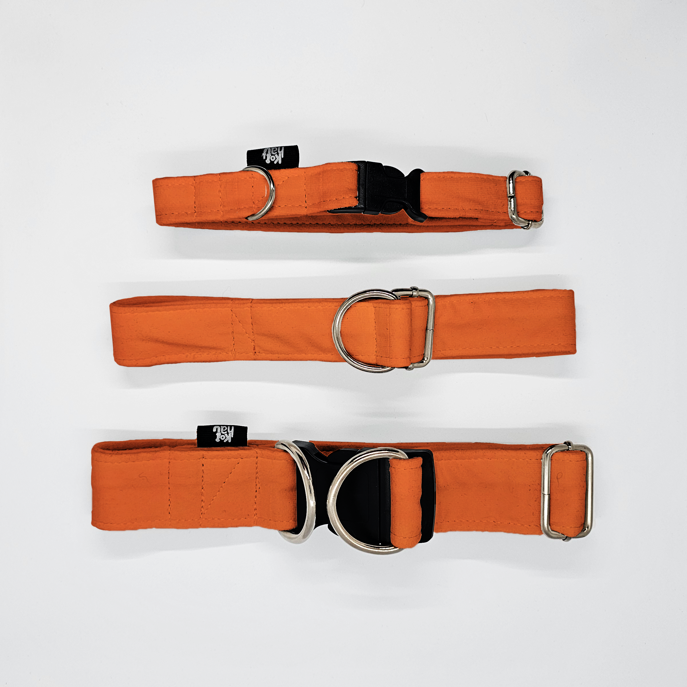 Obroże Kohauimiau mogą być wykonane z weluru tapicerskiego lub tkaniny wodoodpornej oxford  (dokładny opis poniżej). Oba materiały cechują się wysoką wytrzymałością na uszkodzenia mechaniczne. Obroże wykonywane są ręcznie z największą dbałością o szczegóły. Są bezpieczne i wygodne. Okucia spawane ze stali nierdzewnej są wytrzymałe i trwałe.