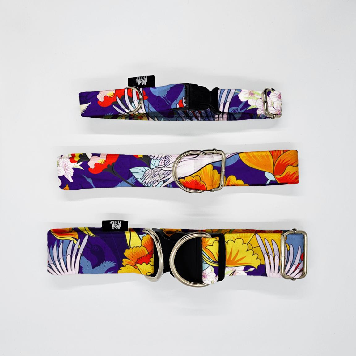 Obroża dla psa i kota – kolorowa wzorzysta – ŻURAWIE W KWIATACH