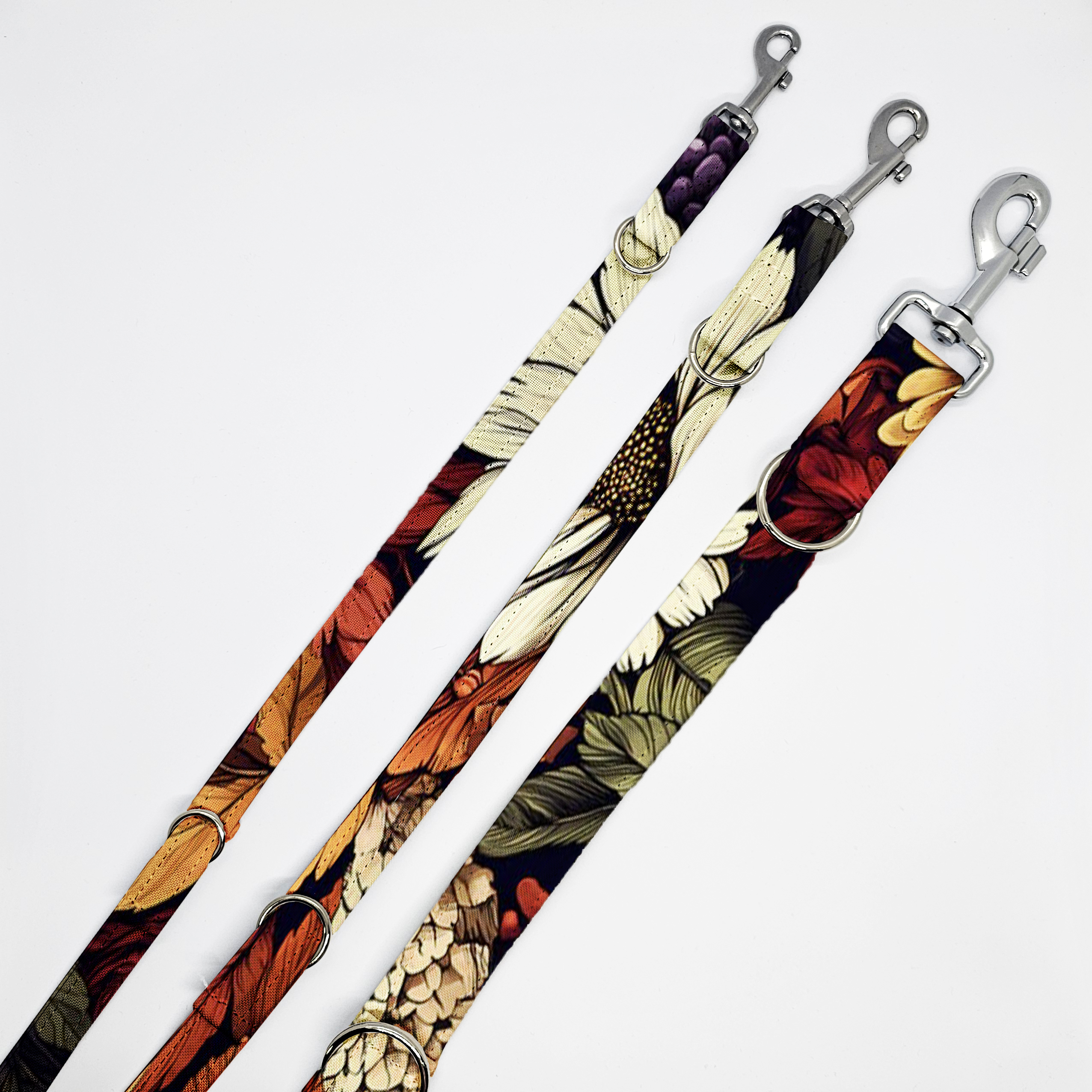 Smycz przepinana – kolorowa wzorzysta – JESIENNE KWIATY