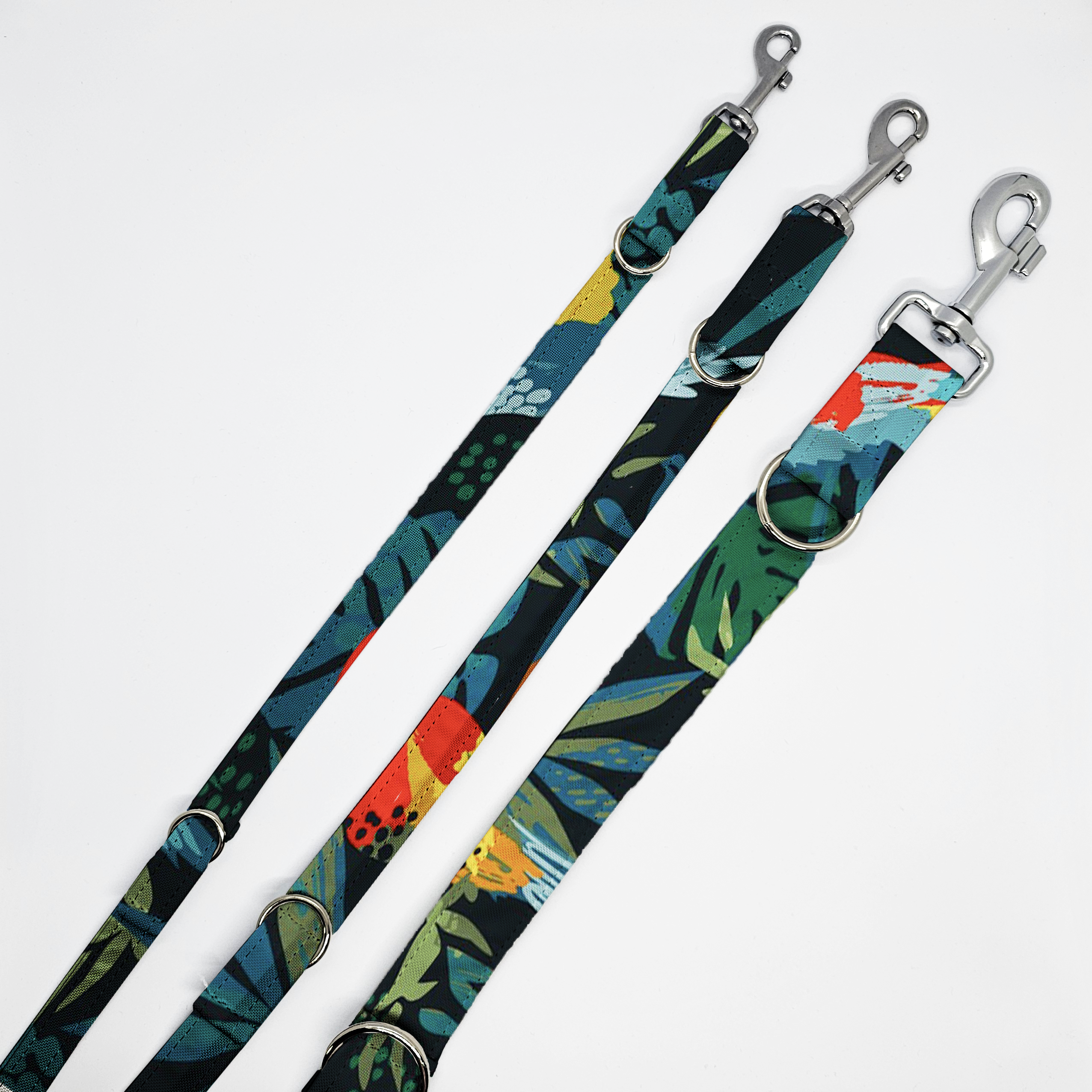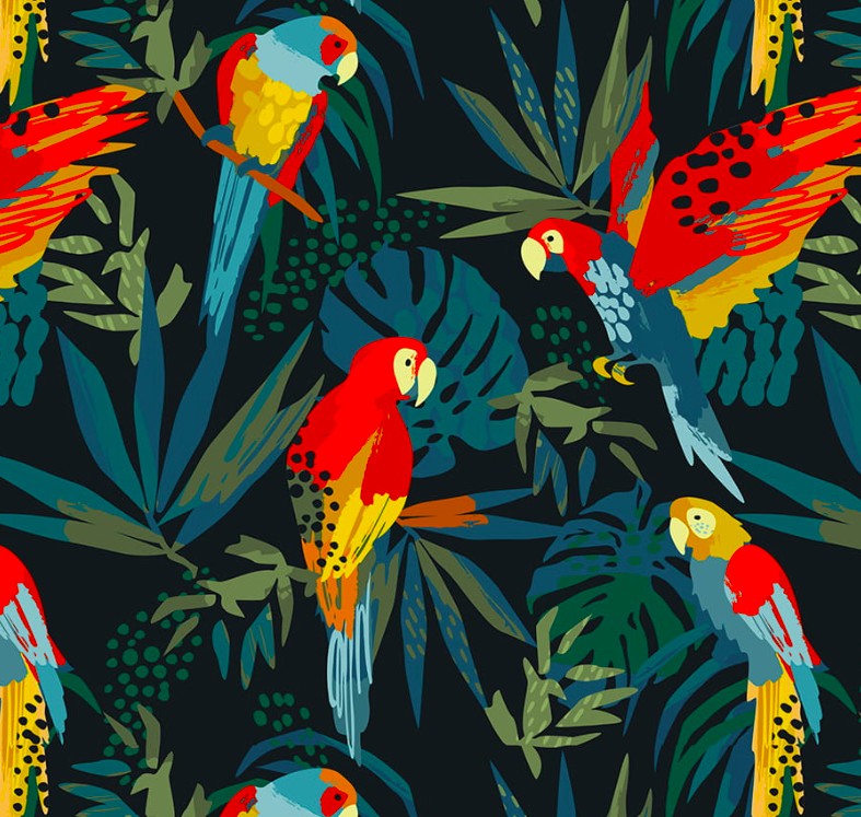 Smycz przepinana – kolorowa wzorzysta – PAPUGI W DŻUNGLI