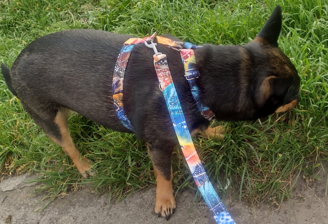Smycz przepinana wykonana z trwałego materiału i spawanych okuć. Dostępna w wielu wzorach i kolorach, długościach i szerokościach taśmy.