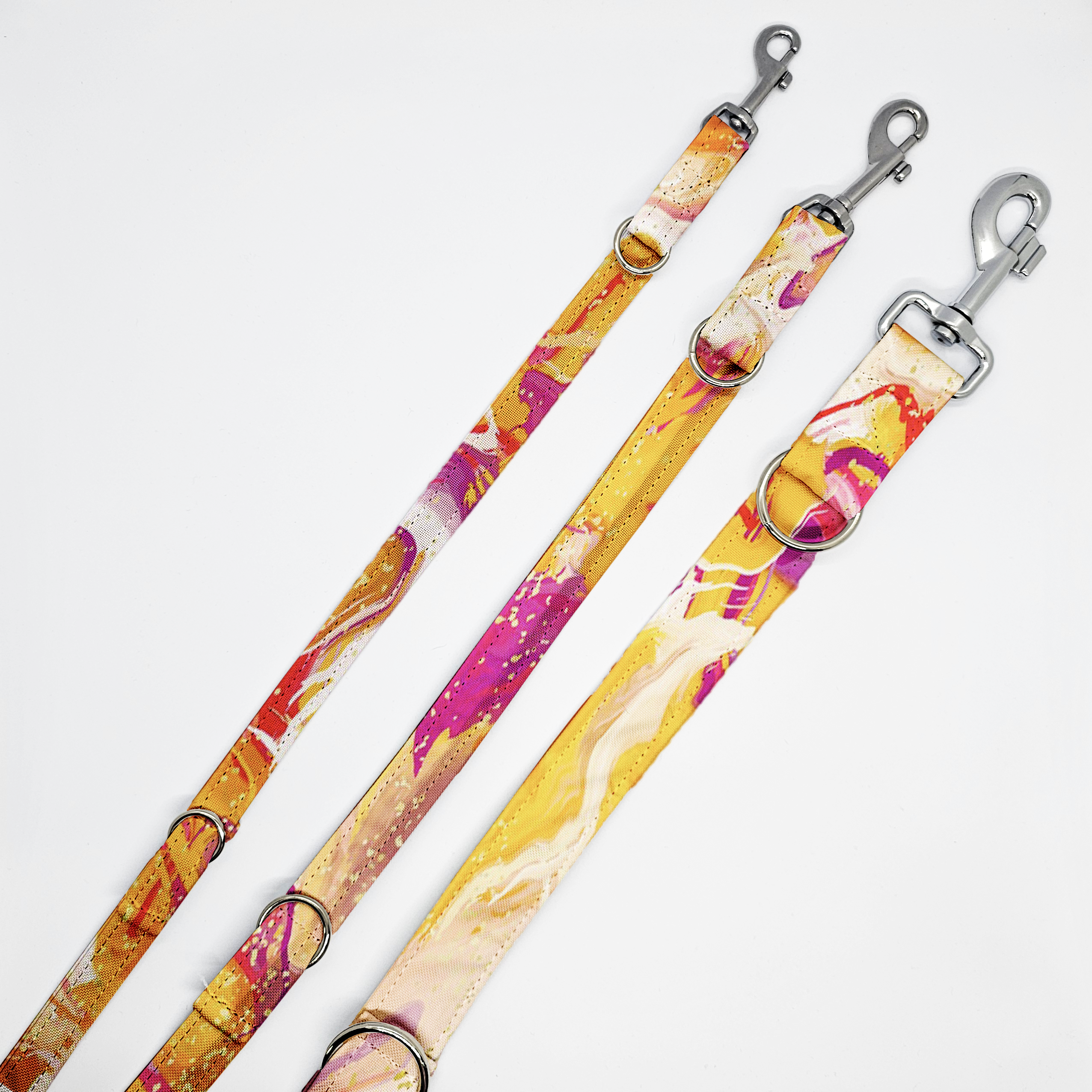 Smycz przepinana – kolorowa wzorzysta – POMARAŃCZOWO-RÓŻOWA ABSTRAKCJA