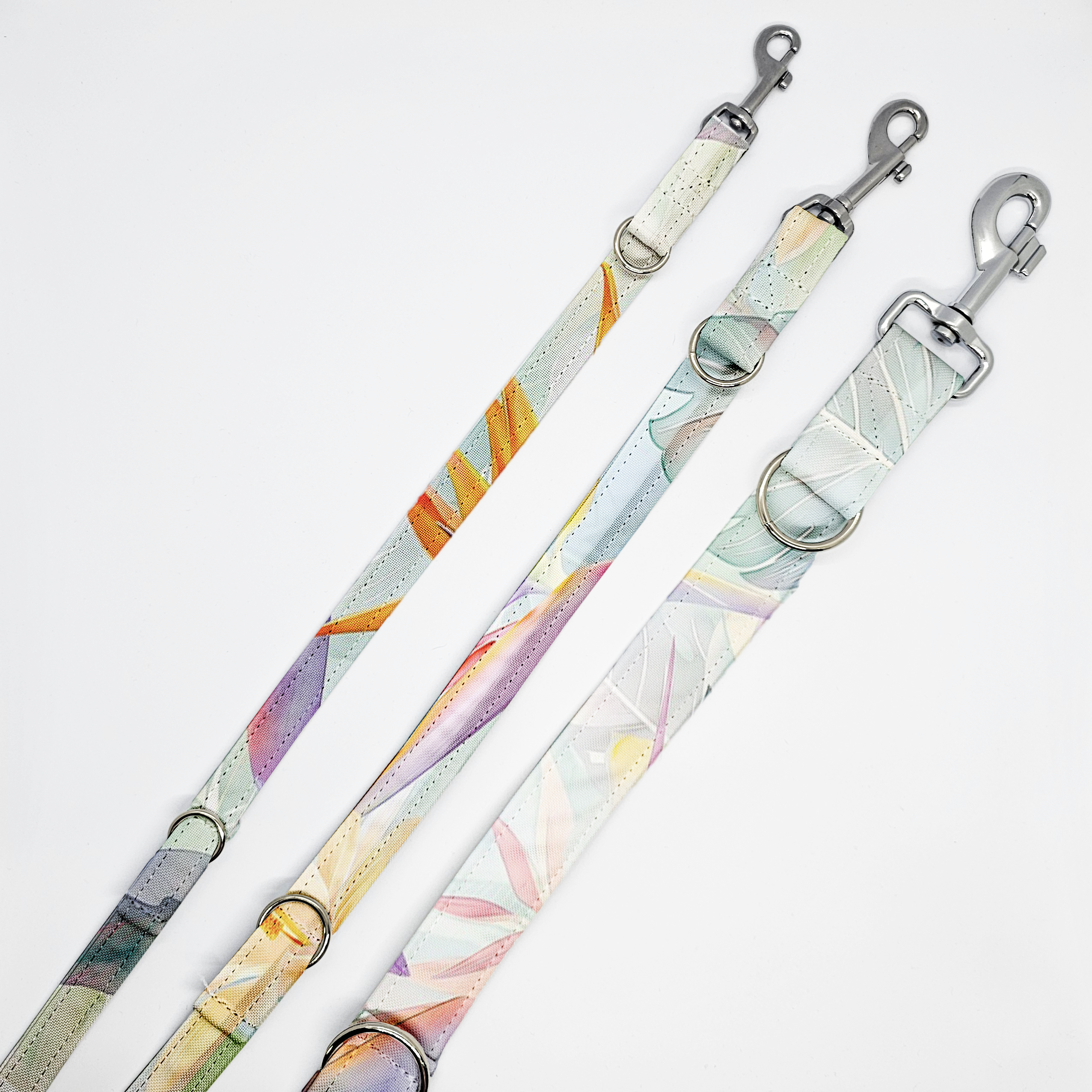 Smycz przepinana – kolorowa wzorzysta – STRELICJE NA JASNYM TLE
