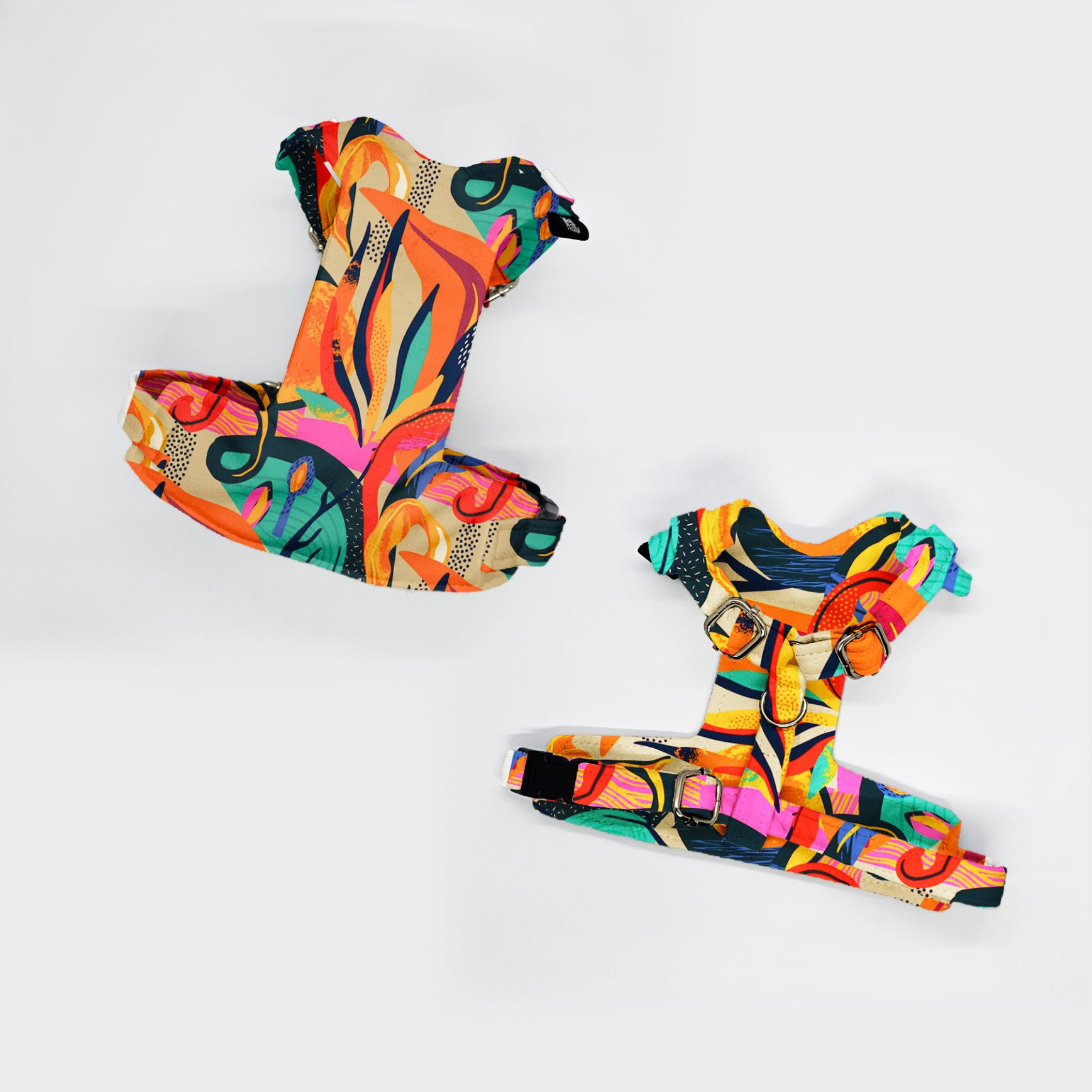Szelki bezuciskowe dla psa – kolorowe wzorzyste – Abstrakcja Pomarańczowe Liście