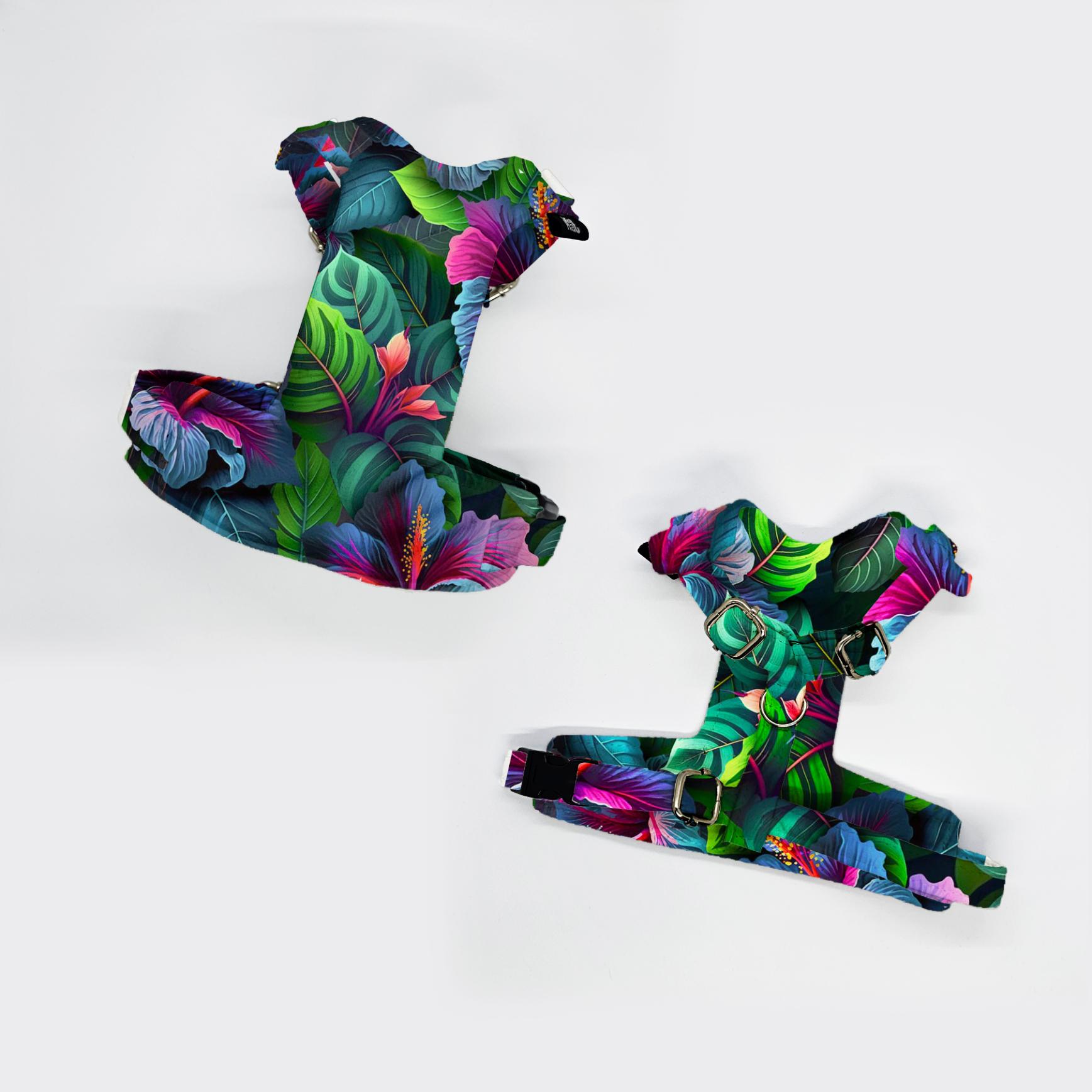 Szelki bezuciskowe dla psa – kolorowe wzorzyste – HIBISKUSY
