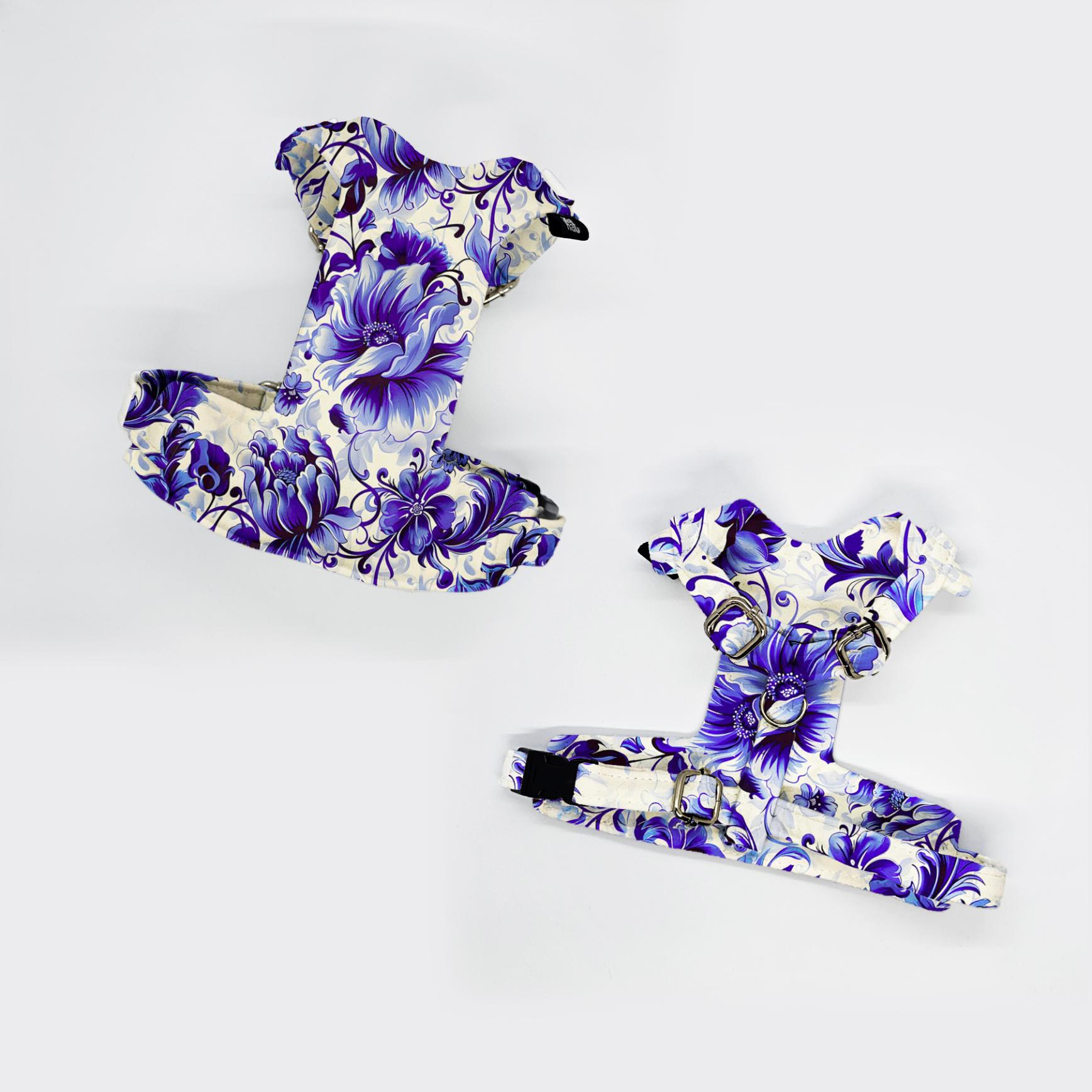 Szelki bezuciskowe dla psa – kolorowe wzorzyste – KWIATY W STYLU FAJANS