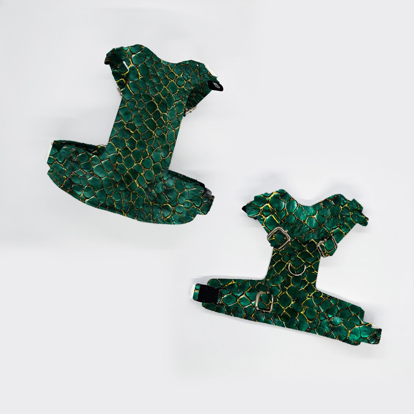 Szelki bezuciskowe dla psa – kolorowe wzorzyste – ZIELONO-ZŁOTA SKÓRA WĘŻA